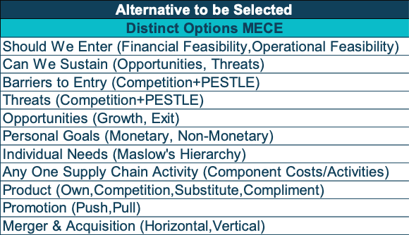 - Select an Alternative(which option is best) -