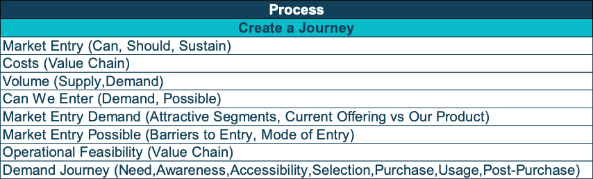 - Method of structuring - Map out the customer journey (or the journey of the relevant stakeholder)