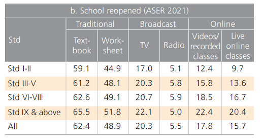 Interestingly, government schools outperform private schools on this front. Unsurprisingly, a higher percentage of schools which have been reopened have provided children with some learning activity for the given reference week.
