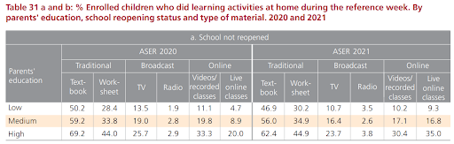 The home environment has a great impact on at home learning and engagement. The parents’ education level seems to have a strong impact on the same.